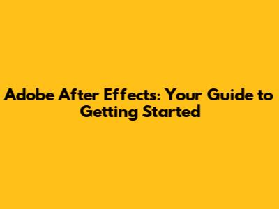 Adobe After Effects: Your Guide To Getting Started