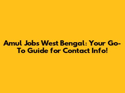 Amul Jobs West Bengal: Contact Info & More