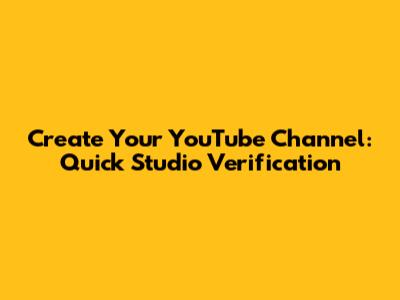 Create Your YouTube Channel: Quick Studio Verification