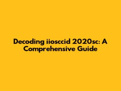 Decoding Iiosccid 2020sc: A Comprehensive Guide