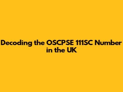 Decoding The OSCPSE 111SC Number In The UK