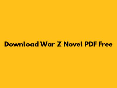 Download War Z Novel PDF Free: Get Your Copy Now!