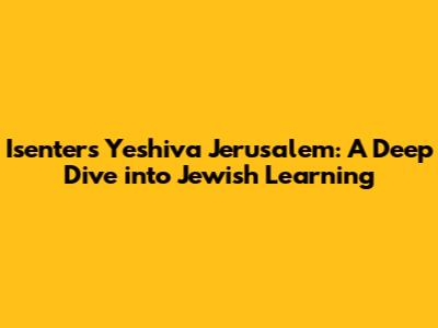 Hey there, folks! Ever wondered about Isenters Yeshiva Jerusalem? Well, buckle up because we're about to take a deep dive into this incredible institution. We'll explore everything from its core mission and values to the daily life of students and the unique aspects that set it apart. Whether you're a prospective student, a parent considering options, or just curious about the world of yeshivas, this article is for you. So, let's get started and unravel the fascinating world of Isenters Yeshiva in Jerusalem!