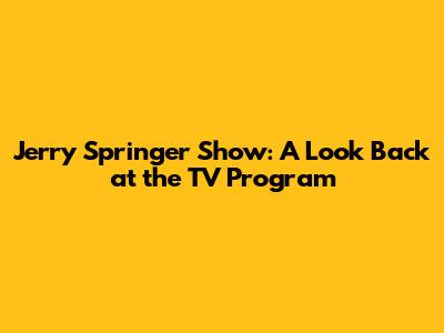 Jerry Springer Show: A Look Back At The TV Program