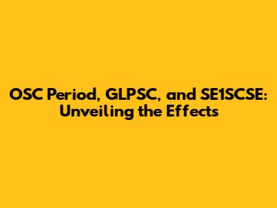 OSC Period, GLPSC, And SE1SCSE: Unveiling The Effects