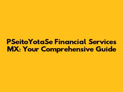 Hey guys! Let's dive deep into the world of PSeitoYotaSe Financial Services MX. This guide is designed to give you a complete understanding of what it is, what it offers, and how you can make the most of it. Whether you're a seasoned investor or just starting, this is your go-to resource.