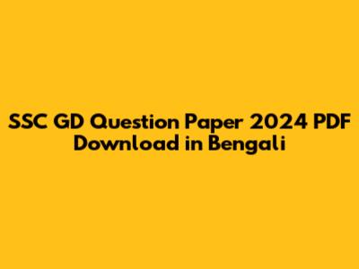 SSC GD 2024 Question Paper PDF Download In Bengali