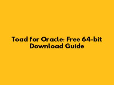 Toad For Oracle: Free 64-bit Download Guide