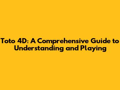 Toto 4D: A Comprehensive Guide To Understanding And Playing