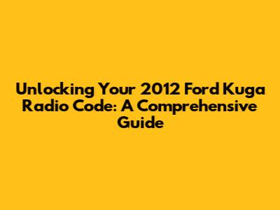 Unlocking Your 2012 Ford Kuga Radio: A Simple Guide