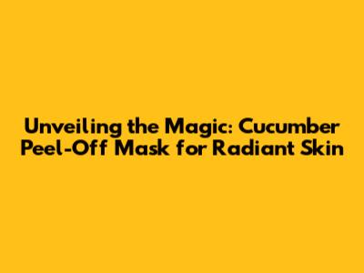 Unveiling The Magic: Cucumber Peel-Off Mask For Radiant Skin